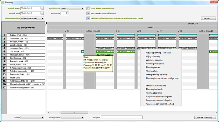 De ingeplande uren in PlanVision koppelt u aan de projecten. Hierdoor kunt u de werkzaamheden die uitgevoerd moeten worden met één druk op de knop op de werkbonnen van uw medewerkers printen. Dit bespaart tijd en schept duidelijkheid. Bij regiewerk kunnen de uit te voeren werkzaamheden direct bij de planning worden aangegeven.
